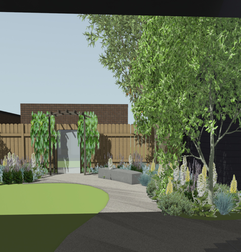 Beplantingsplan voor een (voor)tuin in Ouddorp. Bij dit project was er veel aandacht voor droogtebestendigheid, gebiedseigen beplanting met meerwaarde voor lokale bijensoorten en het onderdrukken van de al aanwezige knollen in de tuin.
