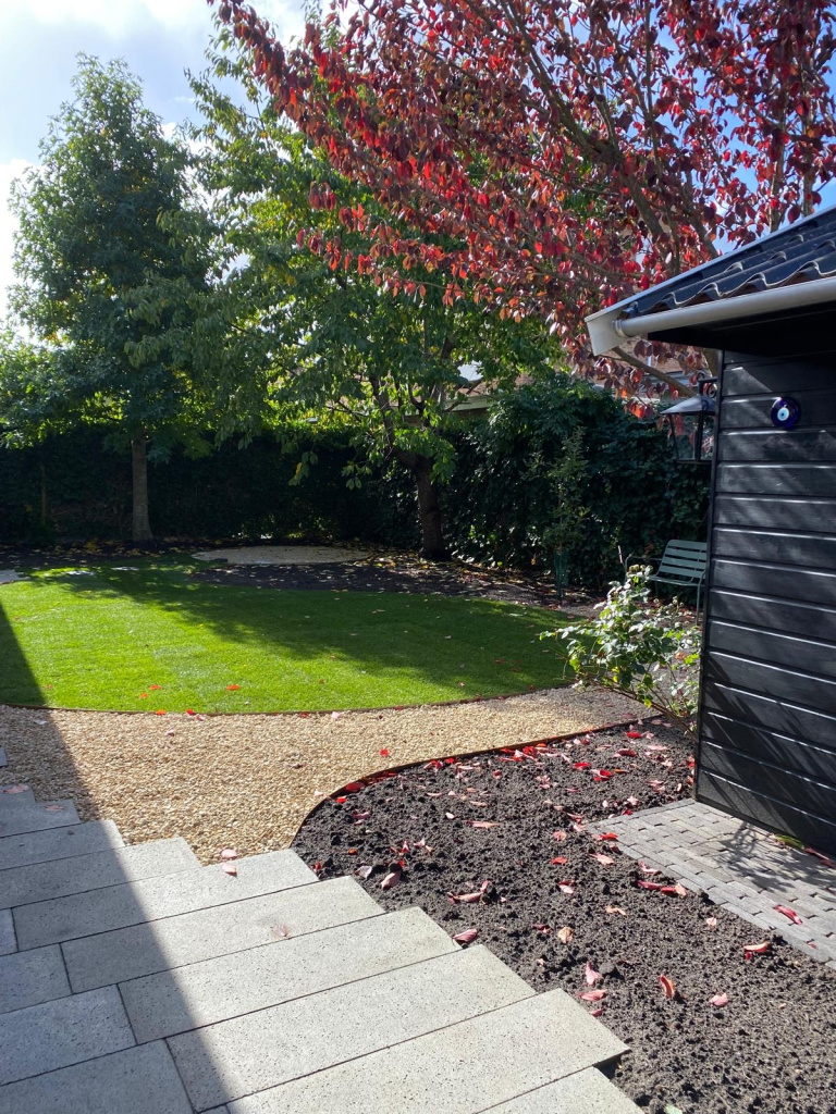 Dit gezin uit Ouddorp had een vrijstaand huis met rondom de tuin en in de achtertuin een royale schuur. Om de tuin optimaal te benutten, diende de stroken rondom het huis, aan zowel de voorkant en zijkant ook functioneel gebruikt te worden.
